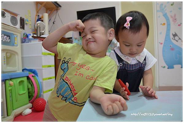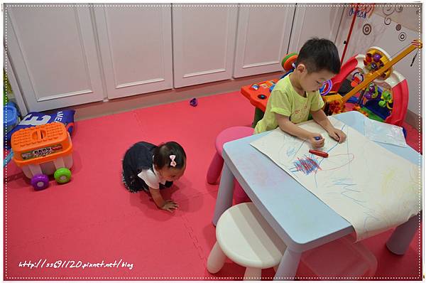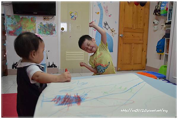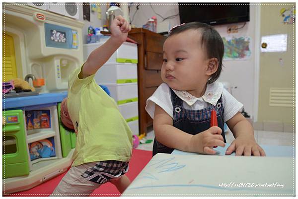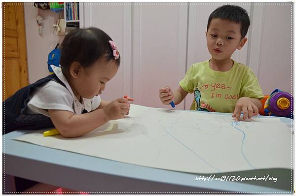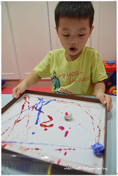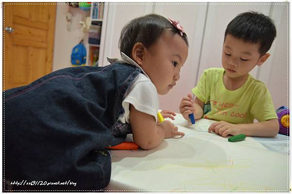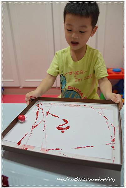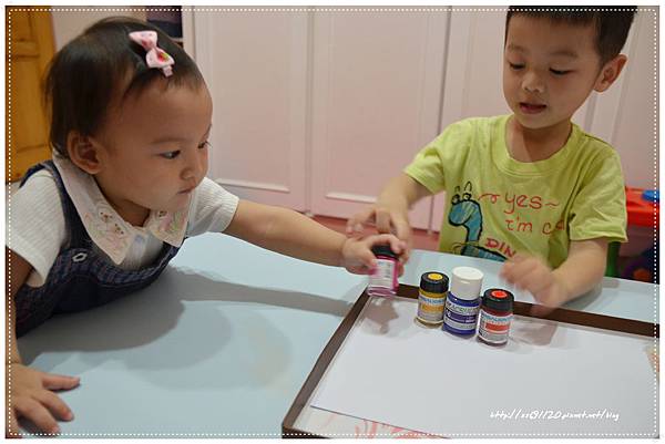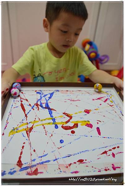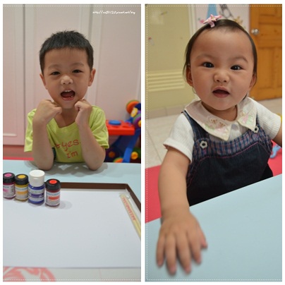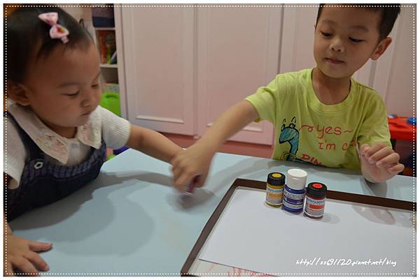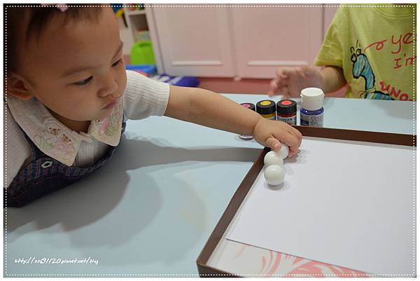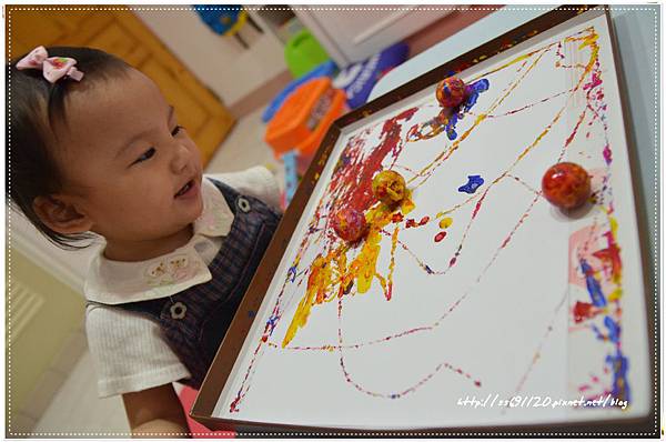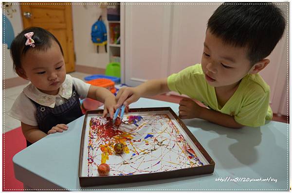 綸3y6m 晴1y1m 年齡懸殊 哥哥幫忙照顧晴晴 我們隨便滾都漂亮的滾珠畫很順利的完成!