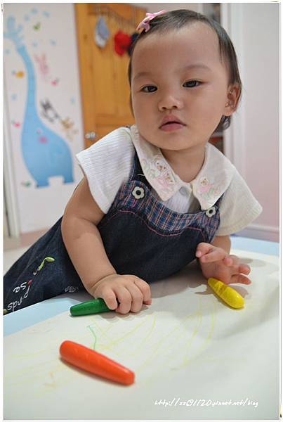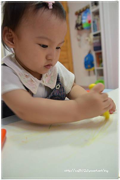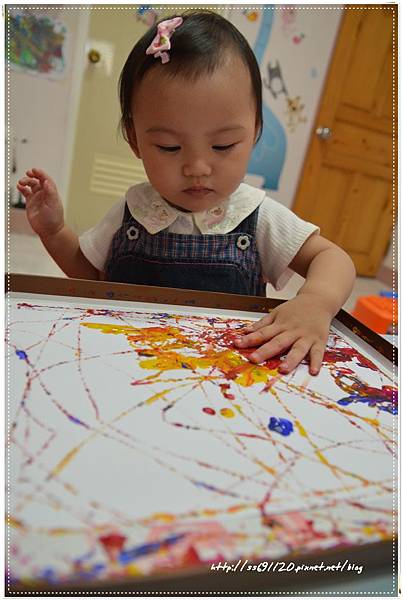 一陣小慌亂之後(包含要嚐嚐彈珠這段) 晴用小手來作畫